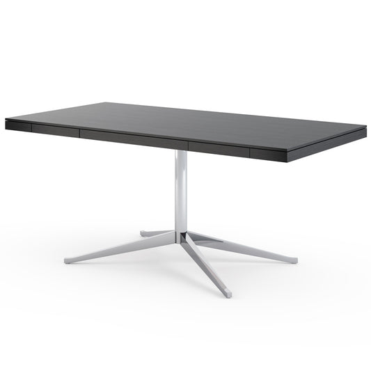 Fresh from her degree, Florence moved to New York, where she began her career as an interior designer, working in several offices and as a part-time designer at the newly formed Hans Knoll Furniture Company. There, she met her future husband, Hans Knoll, one of the company's founders. It took two years for Florence to convince Hans to create an in-house interior design office. In 1943, Florence became head of the newly created Knoll Planning Unit, transforming a small company into an international standard for professionals and designers. After marrying in 1946, the company changed its name to Knoll Associates. Its catalogue included products by Eero Saarinen, Marcel Breuer, Pierre Jeanneret, Harry Bertoia, Franco Albini, and the Barcelona Chair by Mies van der Rohe, for which Florence had managed to obtain the rights. The catalogue also contained iconic pieces created by the designer, still in production today and brought together in the Florence KnollTM collection. The line of upholstered furniture designed in 1954 includes sofas of various sizes, armchairs and benches, covered in leather or fabric with capitonné backs. And the Table Desk table, a timeless classic.