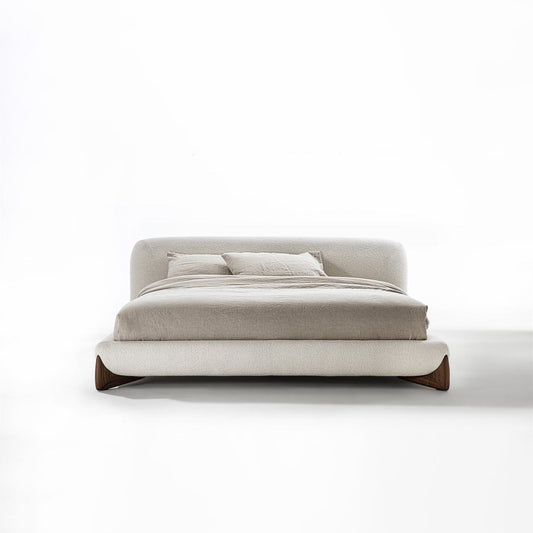 SOFTBAY - Wooden double bed with upholstered headboard (Wood - CANALETTA WALNUT / Upholstery Material - Velvet)