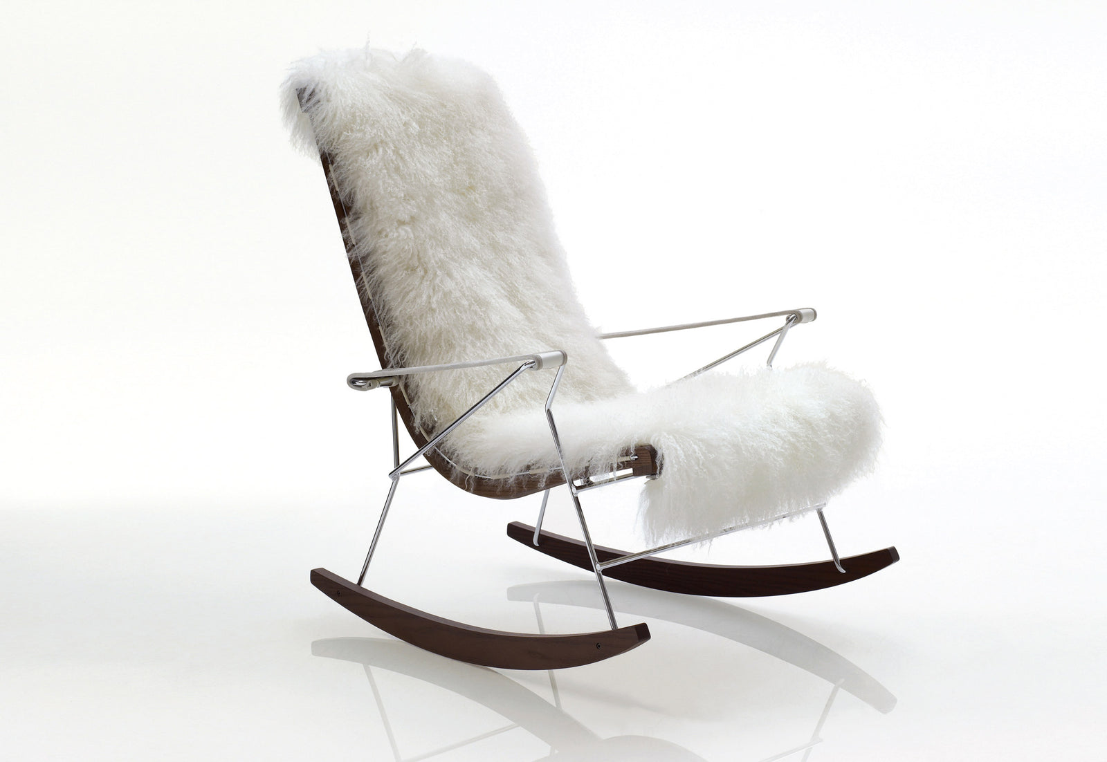 J.J. Rocking Chairs with high backrest & fur lining Mongolian lamb (Upholstery Material - Leather Koto) (Request Info)