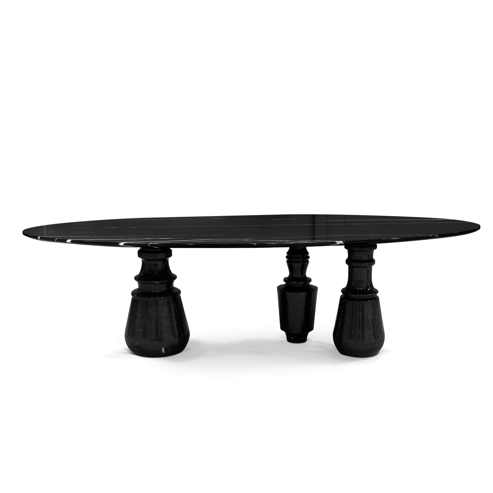 Playing with function and sculptural form, Pietra dining table shapes a timeless experience through its classical aura and finest Nero Marquina black marble.