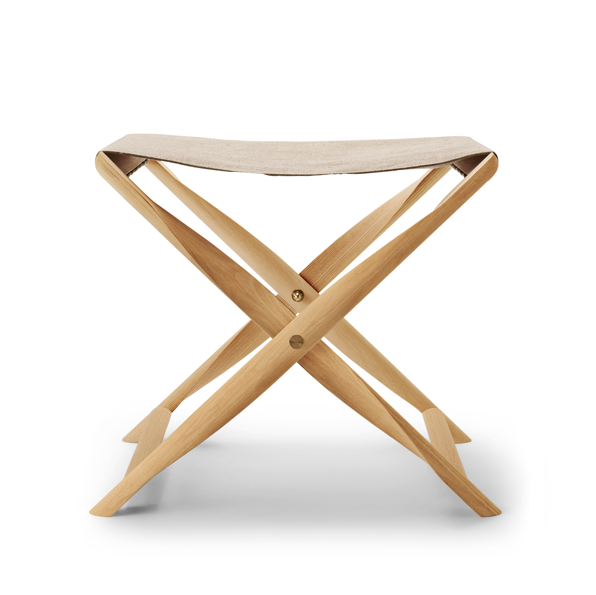 The KK87830 Propeller Stool is an exercise in mathematical construction, and expresses Kaare Klint’s vision of the ideal fold, with the two intersecting, propeller-shaped legs forming a perfectly round rod when folded flat.