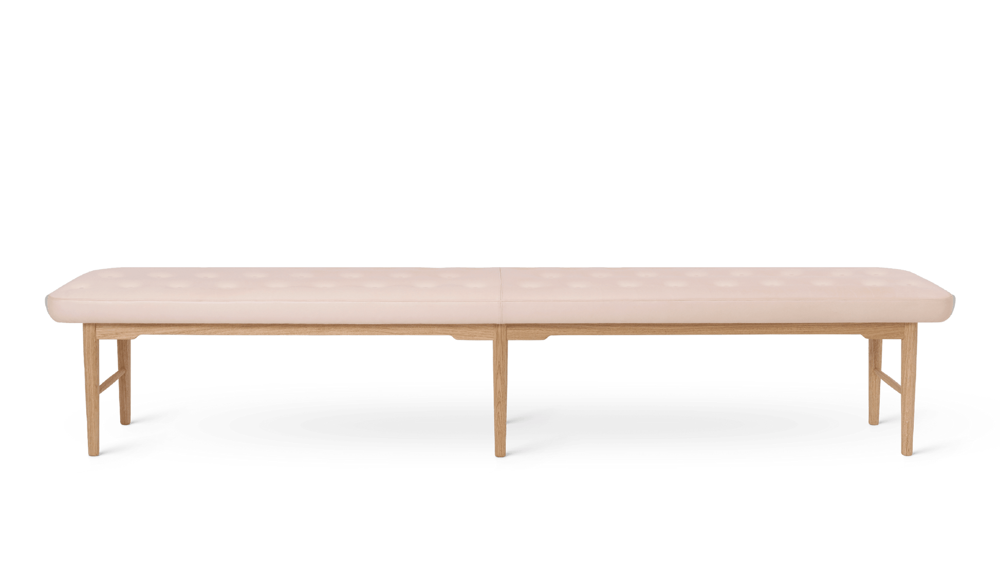 The Foyer Bench has a delicate idiom and is meticulously upholstered with handmade buttons. The Foyer Series was exclusively created by Vilhelm Lauritzen for Radiohuset in Copenhagen in 1945.