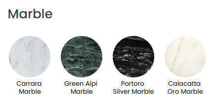오크원목(내추럴), 오크원목(블랙 스테인), 카날레또 월넛, 글로시 래커, 매트 래커, 칼라카타 마블, 베르데 알피 마블, 아르젠토 포르토로 마블, 화이트 카라라 마블