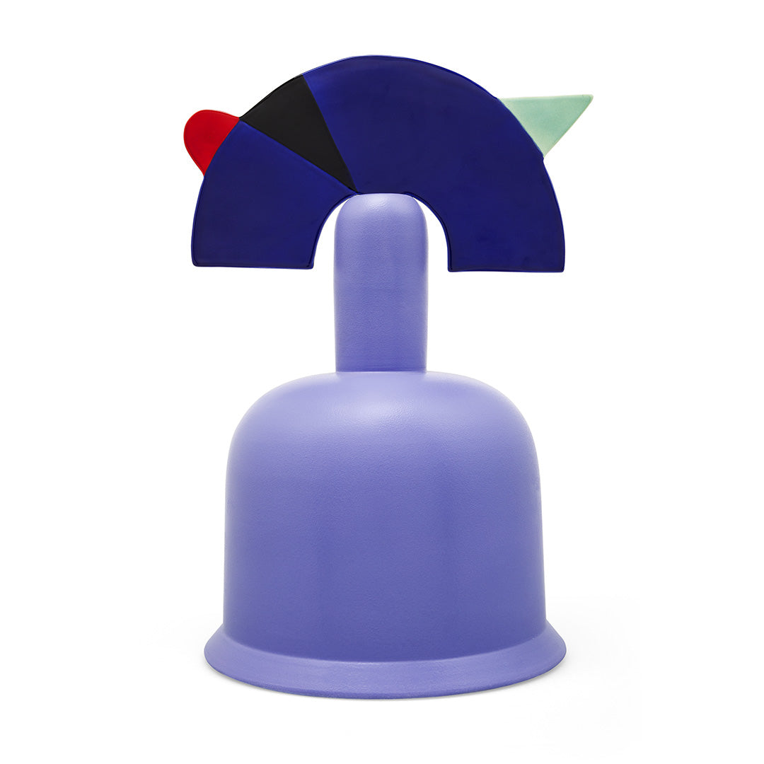 This vase in multicolored ceramic bear the name of the large Russian lake. Designed by Marco Zanini, it rests on substantial circular base that rise upward, supporting a sort of fantasy flower composed of a futuristic corolla emphasized by live colors and interlocking geometric shapes.Turned, shaped and hand painted ceramic vase.