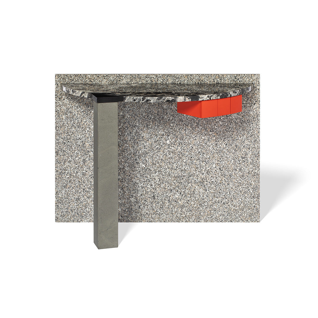 Based on the design of public spaces like subways and stations, Belvedere by Aldo Cibic takes the form of a heavy console in granite, marble and pietra serena. It seems to refer to the classical tradition of architecture in its materials and forms with which Cibic enters an abstract dialogue. Belvedere also impressed the visionary David Bowie becoming, in fact, part of his collection.Marble and granite console. Lacquered wooden drawers.