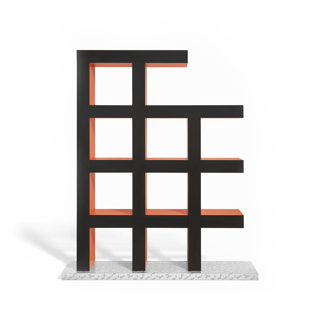 The elegant Castilian by Aldo Cibic is seductive in its simplicity. The square module captivates the viewer with the impression of an incomplete form. The bookcase seems like a primitive diagram, enhanced by the vivacious colors and patterns typical of Memphis. Castilian can act as a space divider or a wall bookcase at the same time.Bookcase in wood covered with decorative laminate.