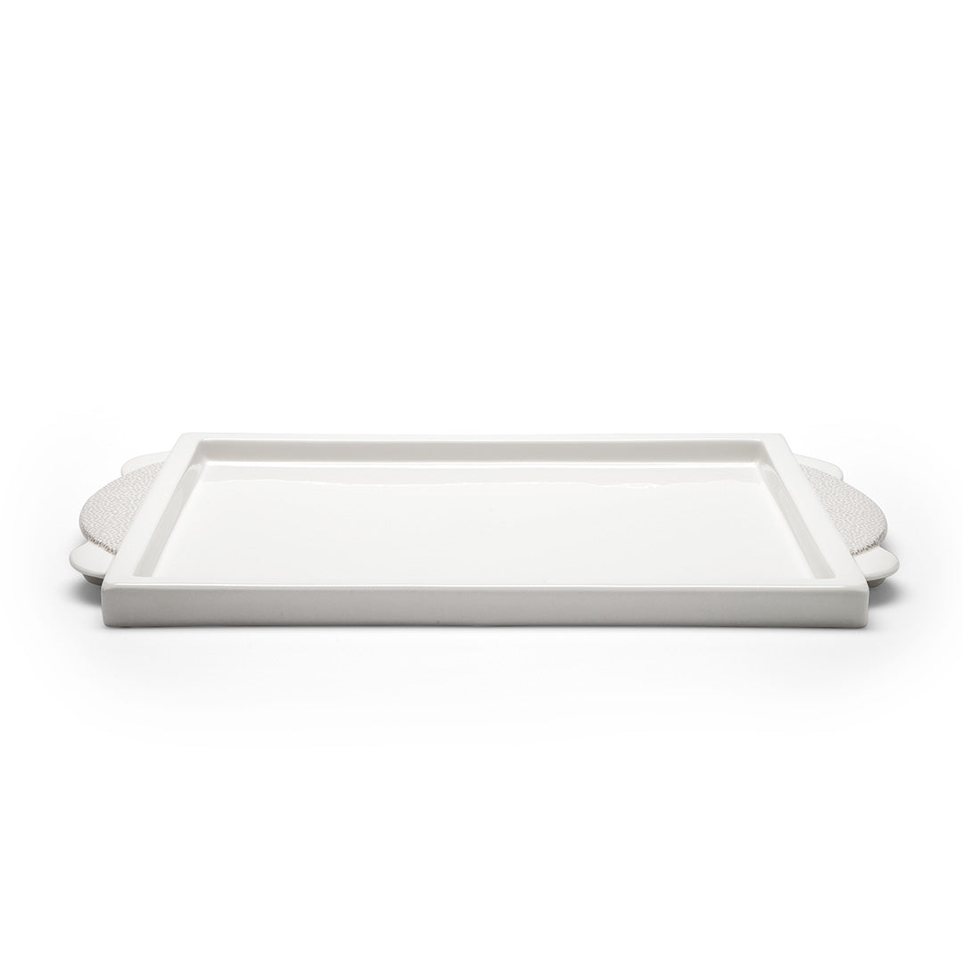 The Manitoba tray by Matteo Thun, which can be joined by the pepper grinder Ontario, the toothpick caddies Erie and Superior, and the Michigan saltcellar, all created in 1982, demonstrate the typically witty anti-functionalism of Memphis and epitomize what Barbara Radice called emotional objects, write Fay Blanchard, Alice Riddy and Eva Haghighi.Hand shaped white porcelain tray with kiln-sublimated decorative decals.