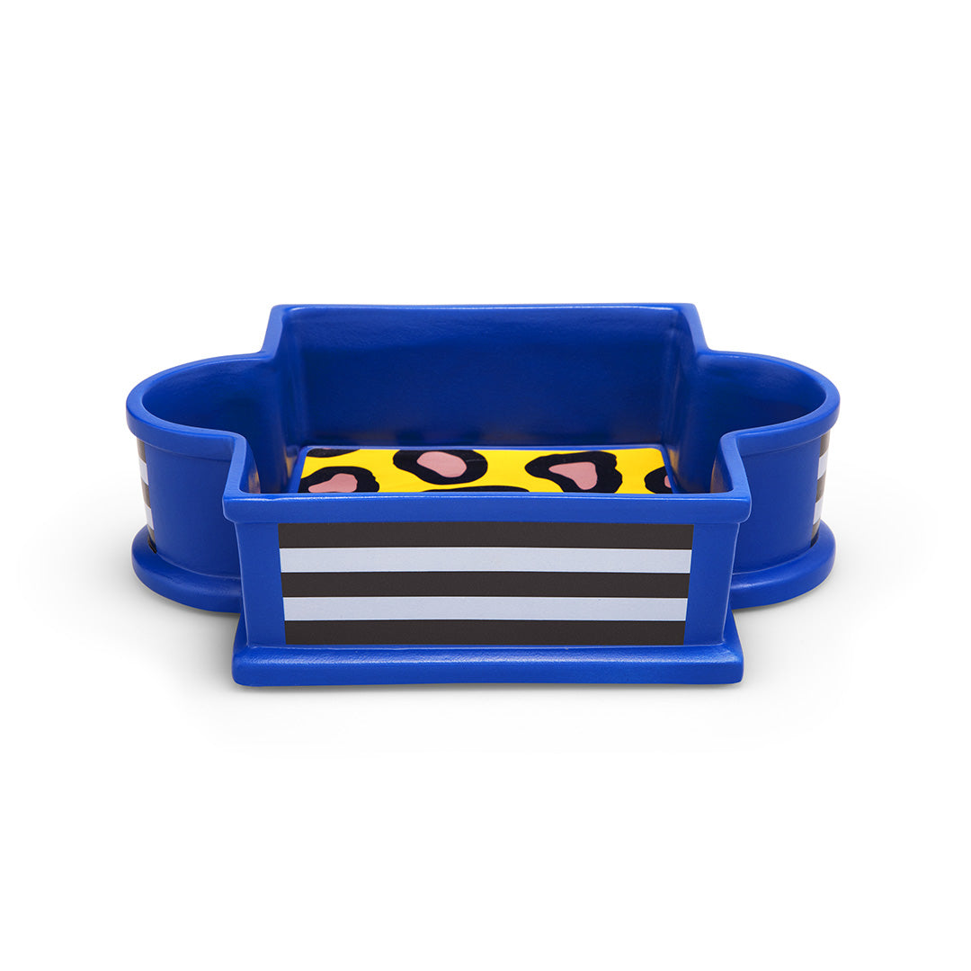 Onion is a fruit holder by Nathalie Du Pasquier – ironically named not for fruit, but for vegetable – made in ceramic and featuring a lively decorative pattern of pink spots with black contours on a yellow background.Hand painted ceramic fruit bowl with kiln-sublimated decorative decals.