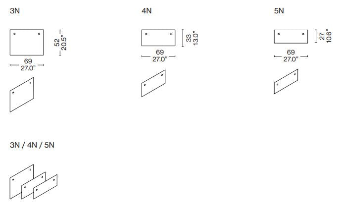 75×H52.2cm, 75×H33.3cm, 75×H27cm, 68.5×H52.2cm, 68.5×H33.3cm, 68.5×H27cm