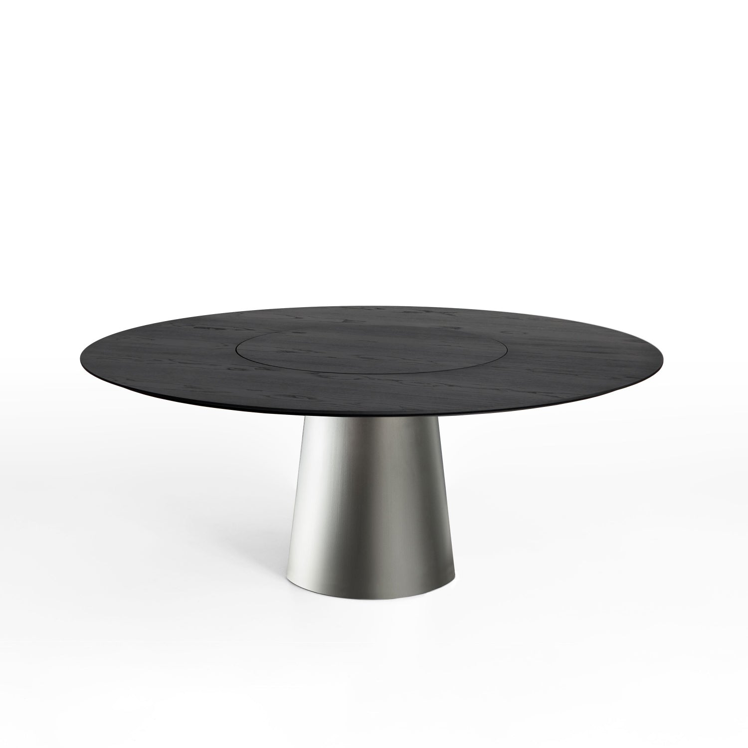 MATERIC - Round dining table with Lazy Susan (Dimension - Ø 1600 x H. 743 mm / Base - Matt Satin Stainless Steel (R28))
