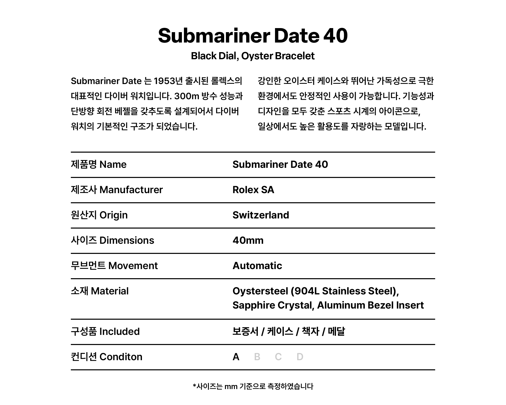 [빈티지/매장즉시발송] Rolex® Submariner Date (40mm | 블랙 다이얼)
