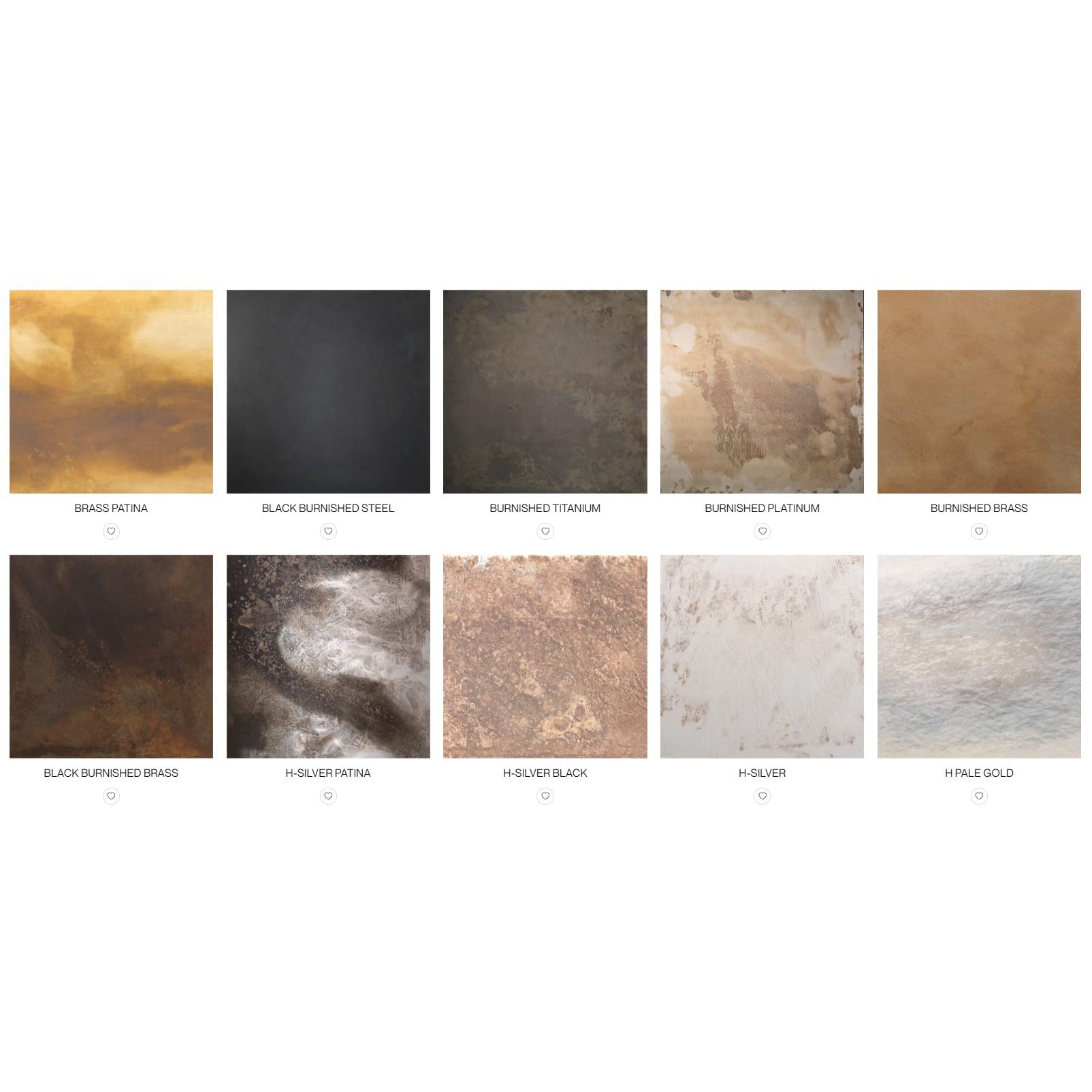 Finishes available: Steel, Brass, brass Patina, H-Silver®, Silver Patina, burnished by hand using traditional techniques, which is a result of an exclusive HENGE recipe.